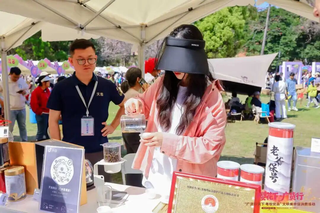 3月14日至15日,在华南农业大学竹铭草海举行的“广货行天下·粤牧优品”文明集市促消费活动上,广东天池茶业股份有限公司携蜜兰香茶包、鸭屎香茶包等产品亮相,还未上市的新品鸭屎香咖啡也在现场收获不少关注。氤氲茶香中,不少师生、市民和游客驻足品尝、交流选购,清雅的单丛韵味与创新饮品的时尚表达成为活动现场一道别具风味的“潮州茶香”。