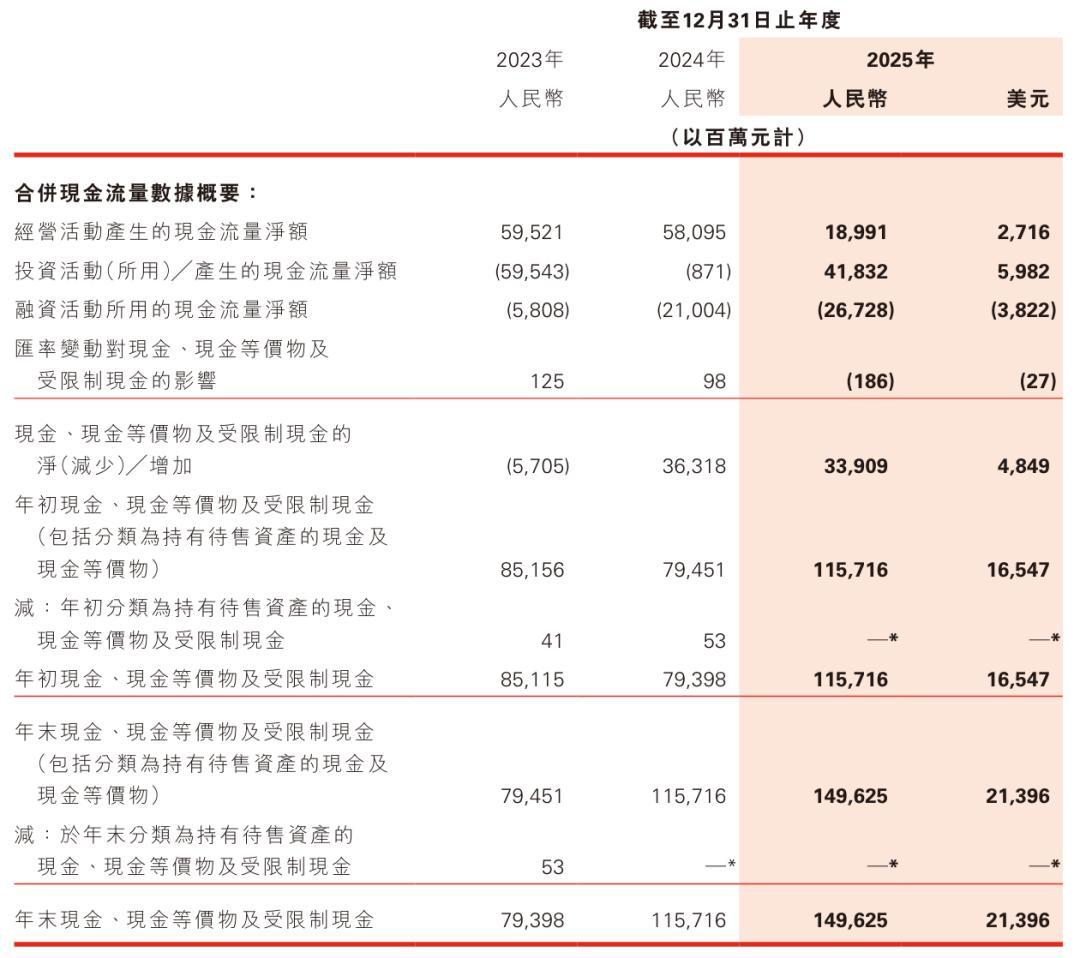 截至2025年12月31日,京东持有的现金及现金等价物、受限制现金为1496.25亿元(约214亿美元)。