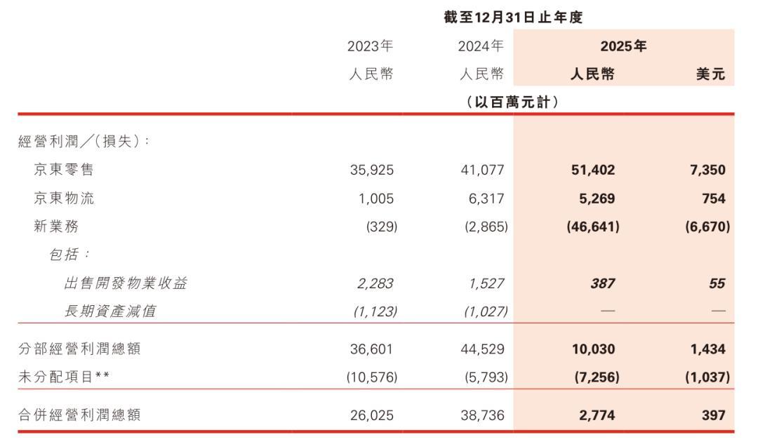 其中,京东零售2025年经营利润514亿元(74亿美元),2024年为411亿元。京东零售经营利润率2025年全年为4.6%,2024年全年为4.0%。