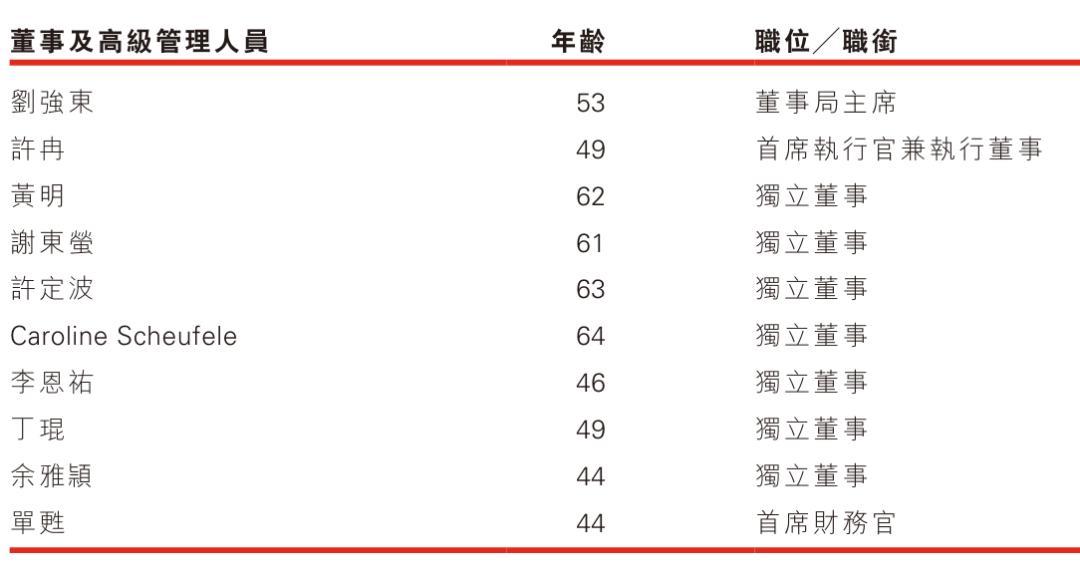 京东集团独立董事分别为黄明、谢东萤、许定波、Caroline Scheufele、李恩祐 、丁琨、余雅颖。